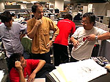 『スチームボーイ』の映像制作の工程を4つのブロックに分けて紹介。「プリプロダクション(1) 骨格のデザイン」では、誕生からパイロット版の制作、キャラクター&メカデザイン。「プリプロダクション(2)
