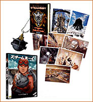 通常版DVDにグラフィックアーツコレクションとスチームボールキーホルダーをセット! 中身を取り出すとDVDが2枚収納できるブックスタイルケース付。