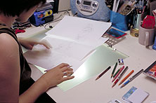動画のセクションまではそんなに変わったということはありません。従来通り、紙と鉛筆を使って描いていますから。ただ、作画したものをコンピュータに取り込むので、動画の描き方も色を塗るソフトの仕様にあわせる必要はありました。最初は「レタス」というソフトを使っていましたが、まだその頃の「レタス」では劇場用のクオリティには耐えられなくて、「USアニメーション」という外国のツールに変更し、「USアニメーション」の使い勝手がいまいちなので、次は「トゥーンズ」に変え、さらに制作がサンライズに移った際に、プロダクションI.Gの協力が得られるということで、I.Gが使っている「アニモ」というソフトに変更しました。その度に、ソフトにあわせて動画の描き方も変えていたので、それが面倒くさかったですね。